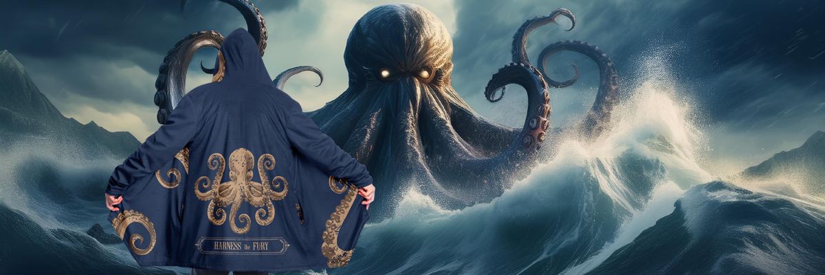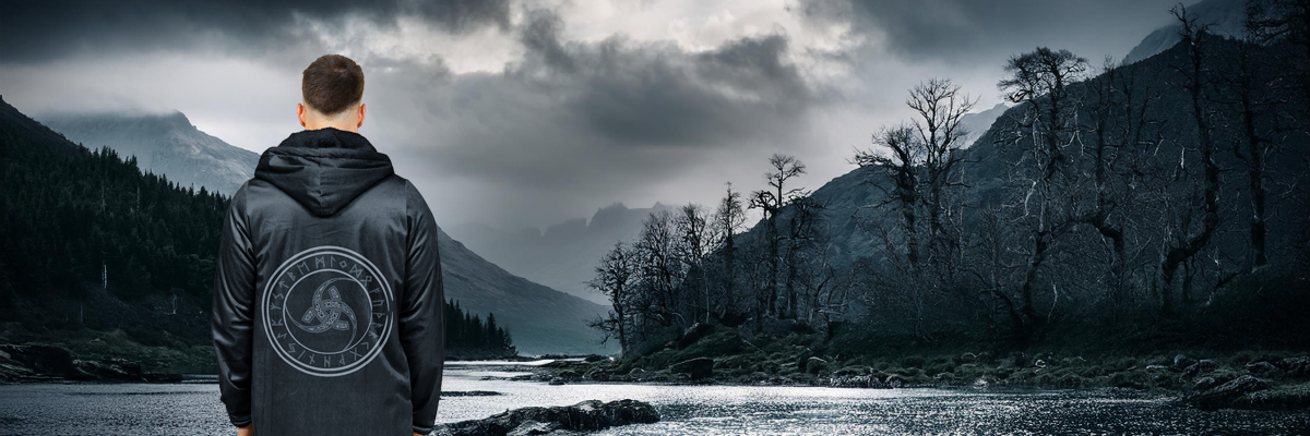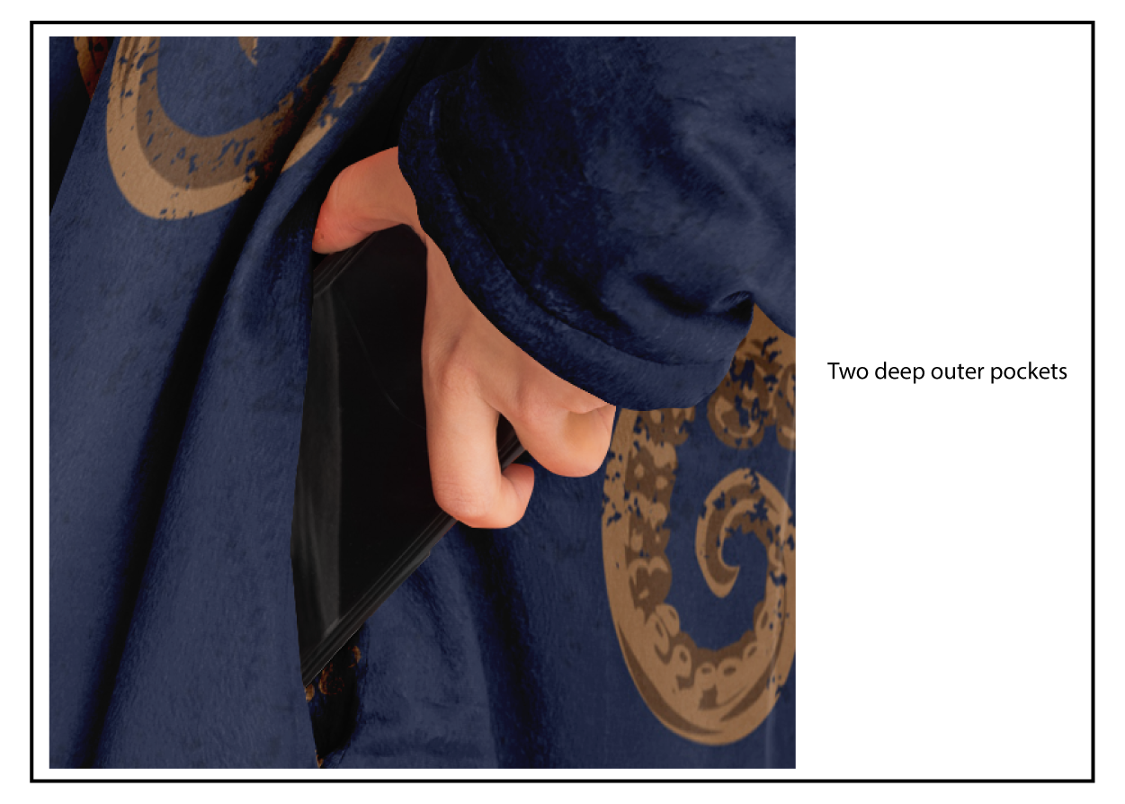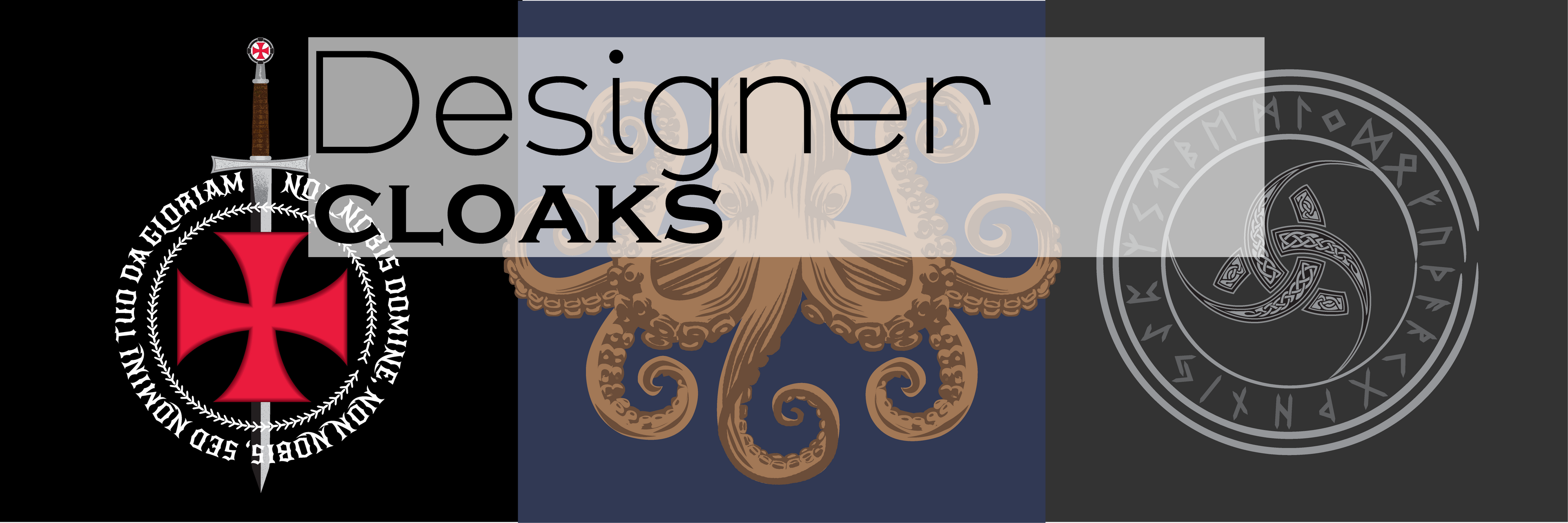 Templar inspired cloak with lux feel. Features a hood, long sleeves,, and two deep pockets with a Templar Cross pattern.